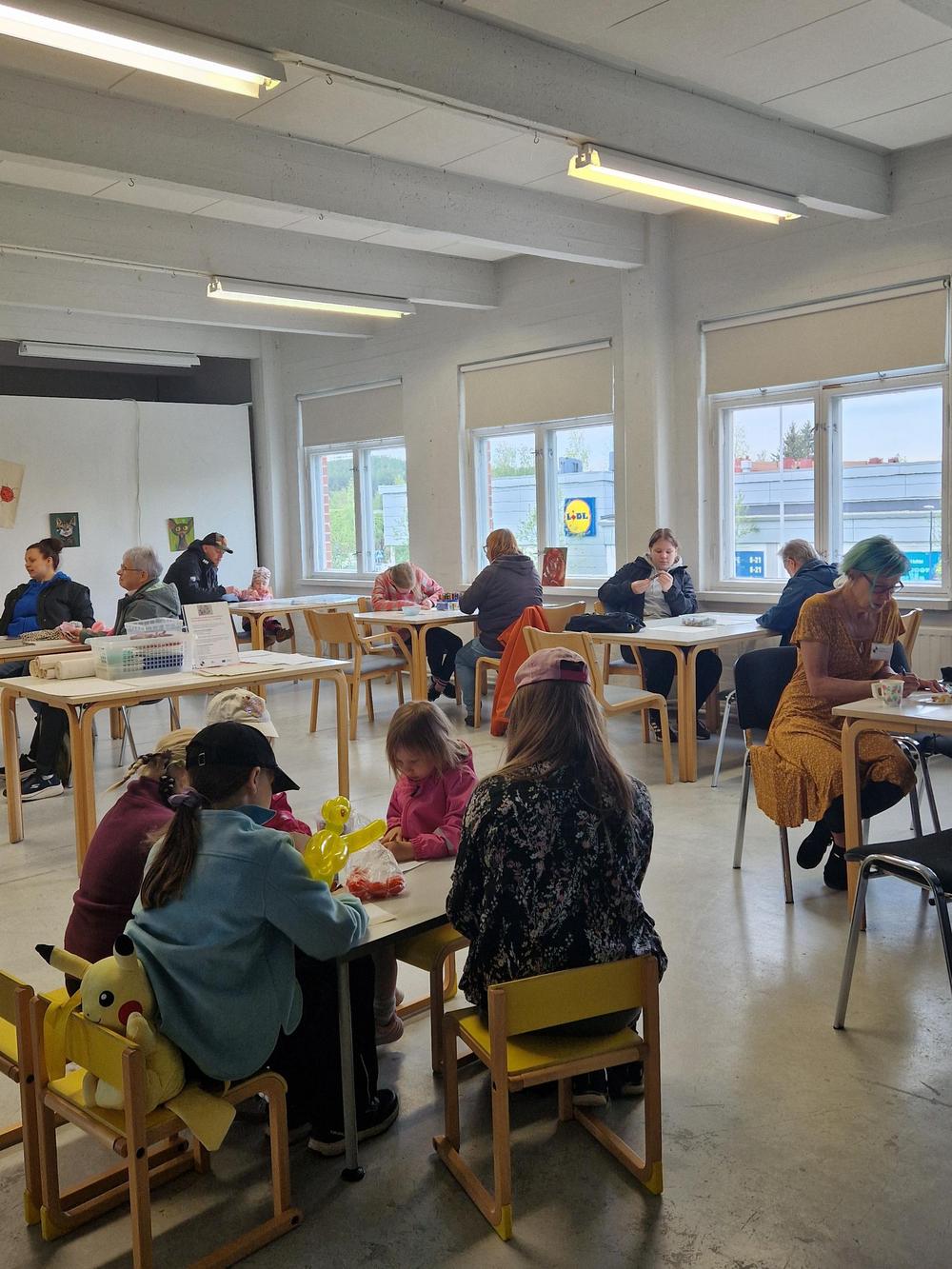 Taideyhdistys oli mukana Orimattilan kaupungin "Olan kesä" -tapahtumassa kulttuuritalolla Perhepäivässä. Pidimme taidetyöpajaa nimikkeellä "Lempieläimeni". Piirtää sai perinteisesti paperille tai lattialle levitetyille tapettirullille. Suuren suosion sai lattialla makuulla piirtäminen. Luovia pikkutaiteilijoita vanhempineen löysi tähänkin toimintapisteeseen runsain mitoin. Kaiken hälinän keskellä tuntui olevan mukava keskittyä omaan luomiseen. Työt olivat hienoja ja omanlaisia!