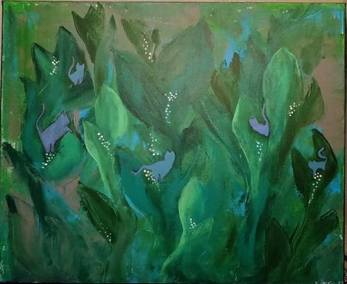 Tammikuun kirjaston Taideseinän taiteilija on Taideyhdistyksen jäsen Helena Jousi.